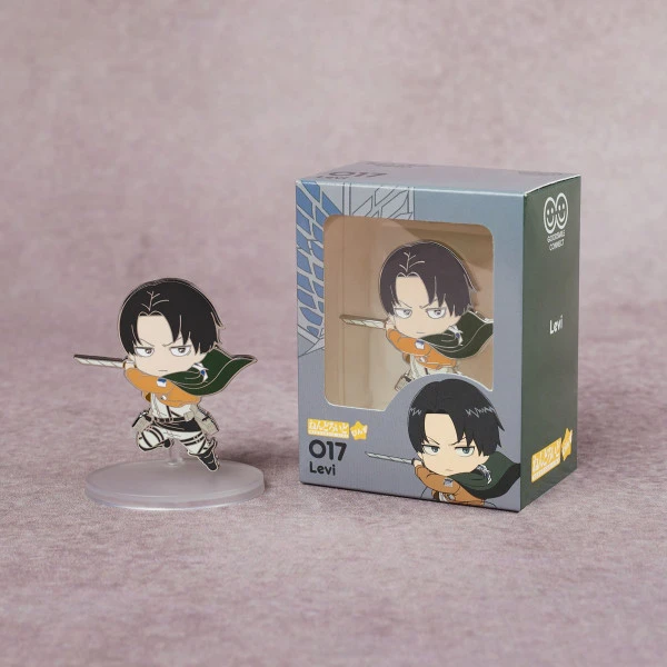 From the popular series “Attack on Titan” comes a Nendoroid Pin of Levi Ackerman. The pin also comes with standee that is attachable to the basic Nendoroid base to add new ways to display your collection.