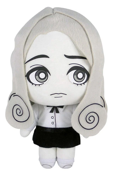 Kirie is presented as an 8″ plush in black and white as shown in the manga. Her hair has begun to curl at the ends and her face looks disturbed due to the grisly curses left by the spirals. Add her to your collection and keep each other safe from the horror!